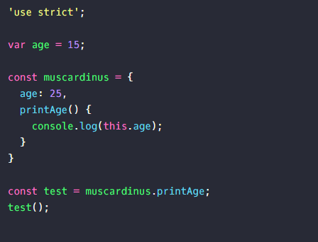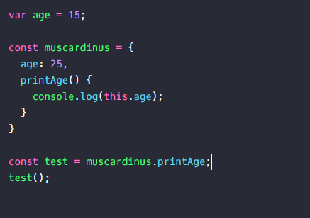 this가 사용되는 함수는 muscardinus라는 객체의 printAge 라는 속성으로 할당되어 있다.