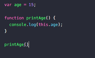 this가 실행되는 곳은 맨 마지막 줄의 printAge 함수이다.