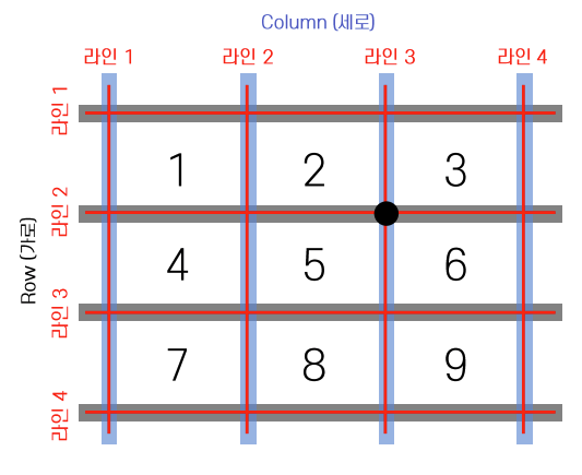 Column이 3개라면 Column 라인은 4개가 있다. 로우도 마찬가지 논리이다.