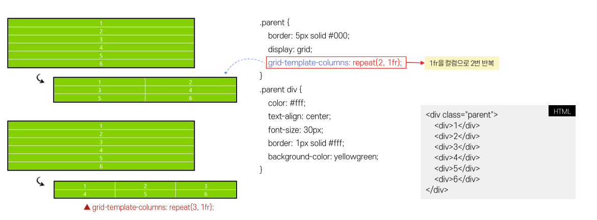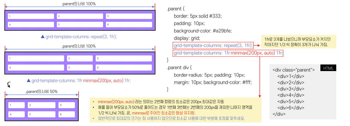 grid-template-columns / rows 에서 사용하기 유용하다.