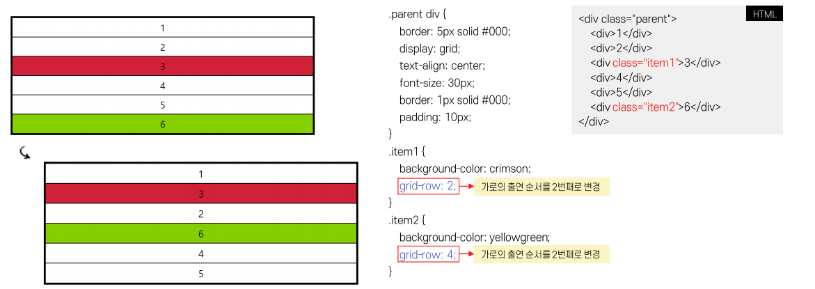grid-row-start, grid-row-end -> 가로의 시작 위치와 끝 위치를 나타낸다.